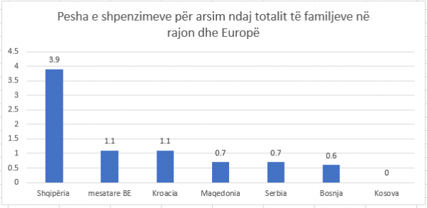 Mesatarja e Bashkimit Europian është 1.1%, ndërsa një familjeje në rajon i kushton shumë më pak (në termin relativ ndaj shpenzimeve totale) që të shkollojë fëmijën. Serbia, Maqedonia, Bosnjë Hercegovina e kanë këtë raport midis 0.6-0.7%, ndërsa në Kroaci arrin në 1.1%.