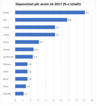 Për Kukësin, qarkun më të varfër të vendit, duket se shpenzimet për arsim rëndojnë më shumë se në qaqet e tjera të vendit. Për familjet kuksiane shpenzimet për arsim kanë një peshë të konsiderueshme në totalin e shpenzimeve që ato bëjnë, me rreth 9.1% të totalit, duke u renditur pas shpenzimeve për ushqim, sipas INSTAT.