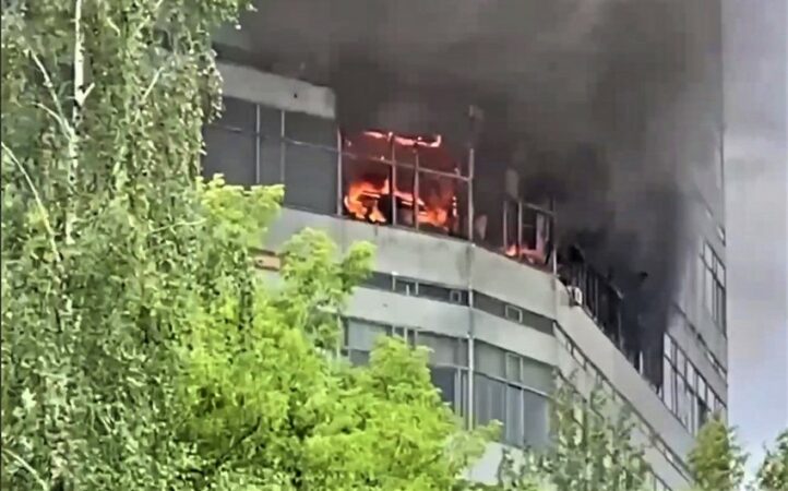Zjarri përfshiu katin e pestë duke arritur deri në katin e 8-të. Zjarri është kategorizuar si zjarr me tre alarme (nivel i lartë). Mbi 100 forca zjarrfikëse, përfshirë helikopterët Ka-32, janë angazhuar në përpjekjet për shuarjen e flakëve.