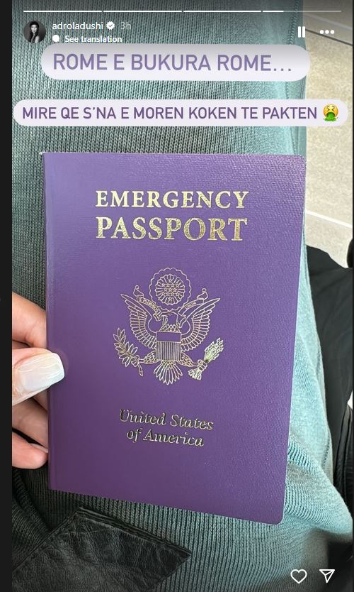 “Rome e bukura Romë”, ka shkruar Adrola. “Mirë që nuk na morën kokën të paktën”, shton më tej modelja, duke vënë gjithashtu edhe ikonën e neveritjes.