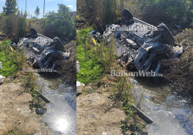 Një automjet ka dalë nga rruga duke përfunduar në kanalin anësor të rrugës.