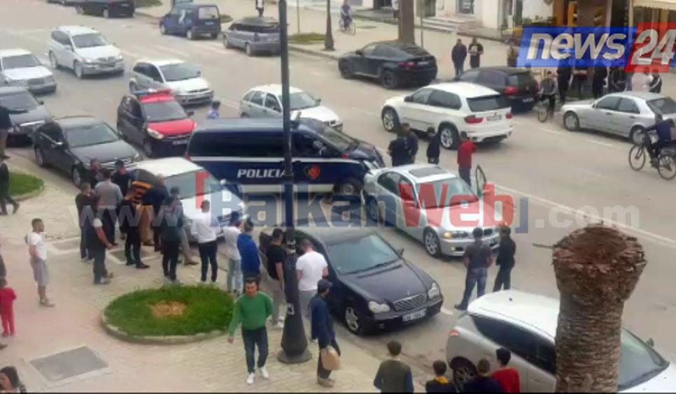 Gazetari Enrik Mehmeti raporton për ‘BalkanWeb’ se një fugon policie është përplasur me një mjet tjetër tip ‘BMW’.