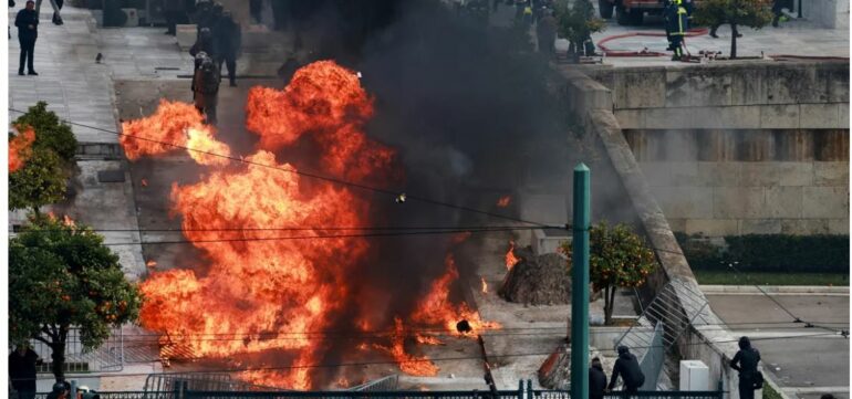 Demonstrata në Athinë për të shënuar përvjetorin e dytë të tragjedisë më të rëndë hekurudhore të vendit u shoqërua nga përleshjet midis anarkistëve me kapuç dhe policisë. Gjithçka filloi kur anarkistët hodhën bomba me benzinë drejt një njësie të madhe policie të vendosur në oborrin e Parlamentit grek.