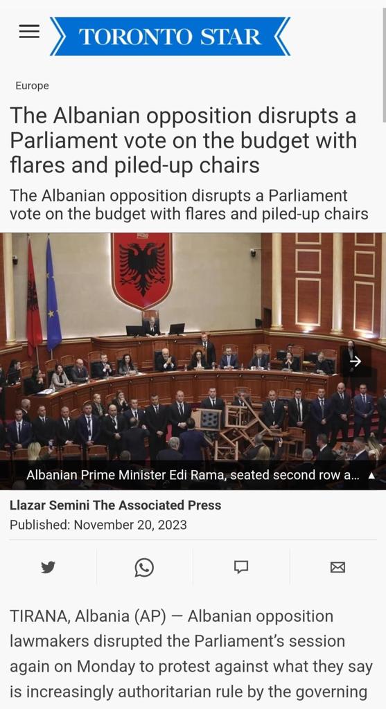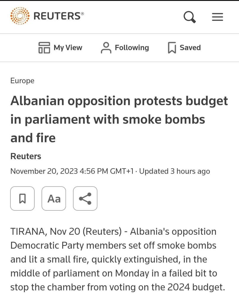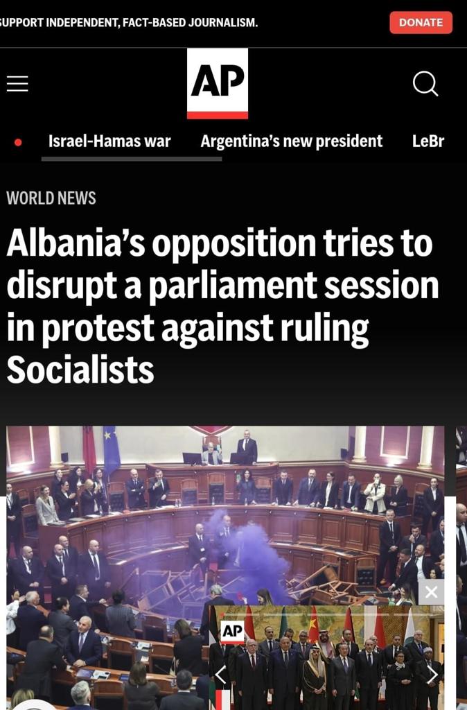 Uashington Post, The Guardian, Reuters, AP dhe mediat italiane kanë raportuar ngjarjet e ditës së sotme me titullin “Opozita shqiptare përpiqet të prishë një seancë parlamenti në shenjë proteste kundër socialistëve në pushtet”