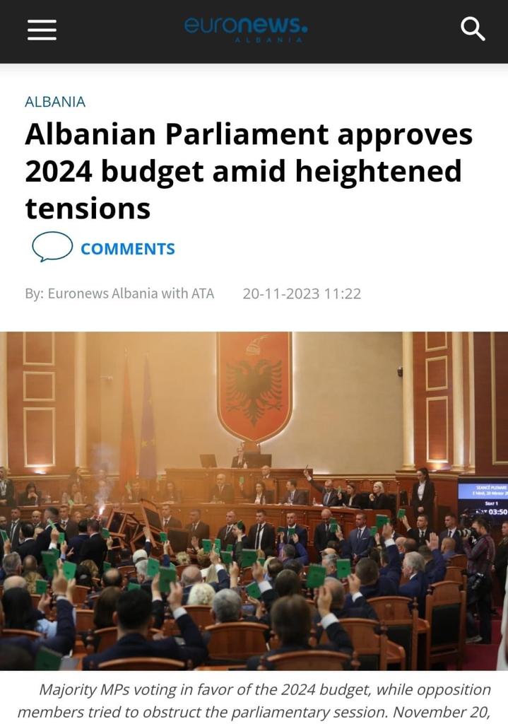 Euronews: Kuvendi i Shqipërisë miraton buxhetin e vitit 2024 mes tensioneve të shtuara