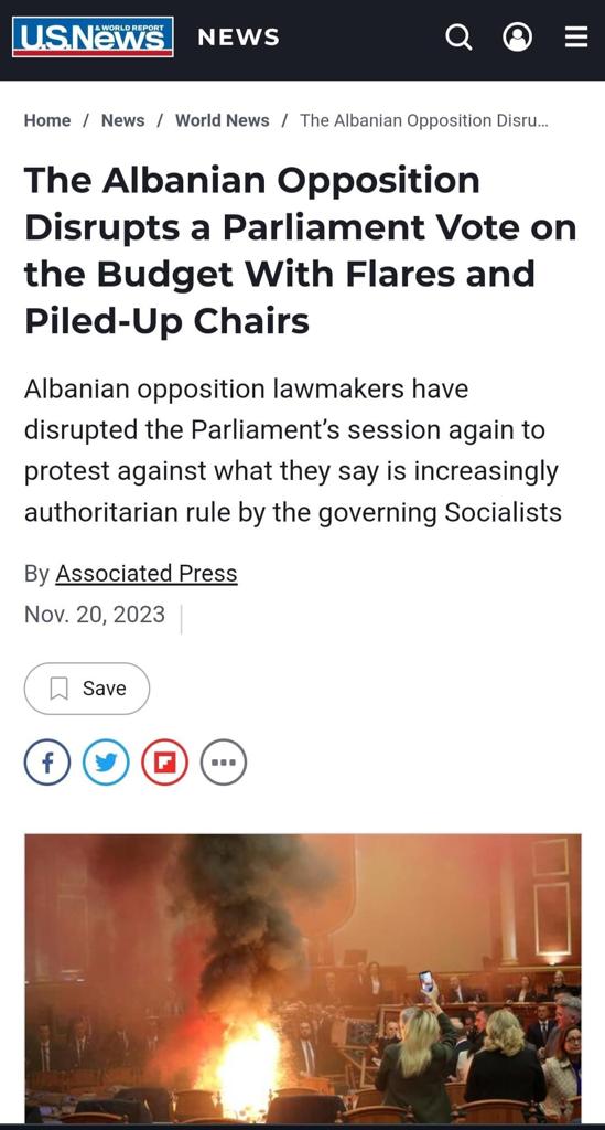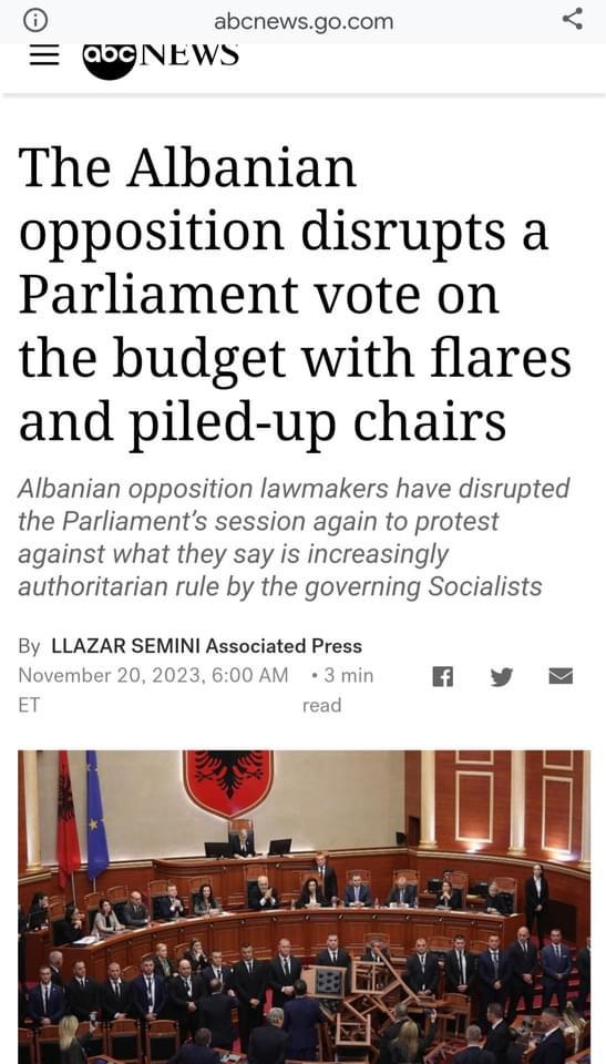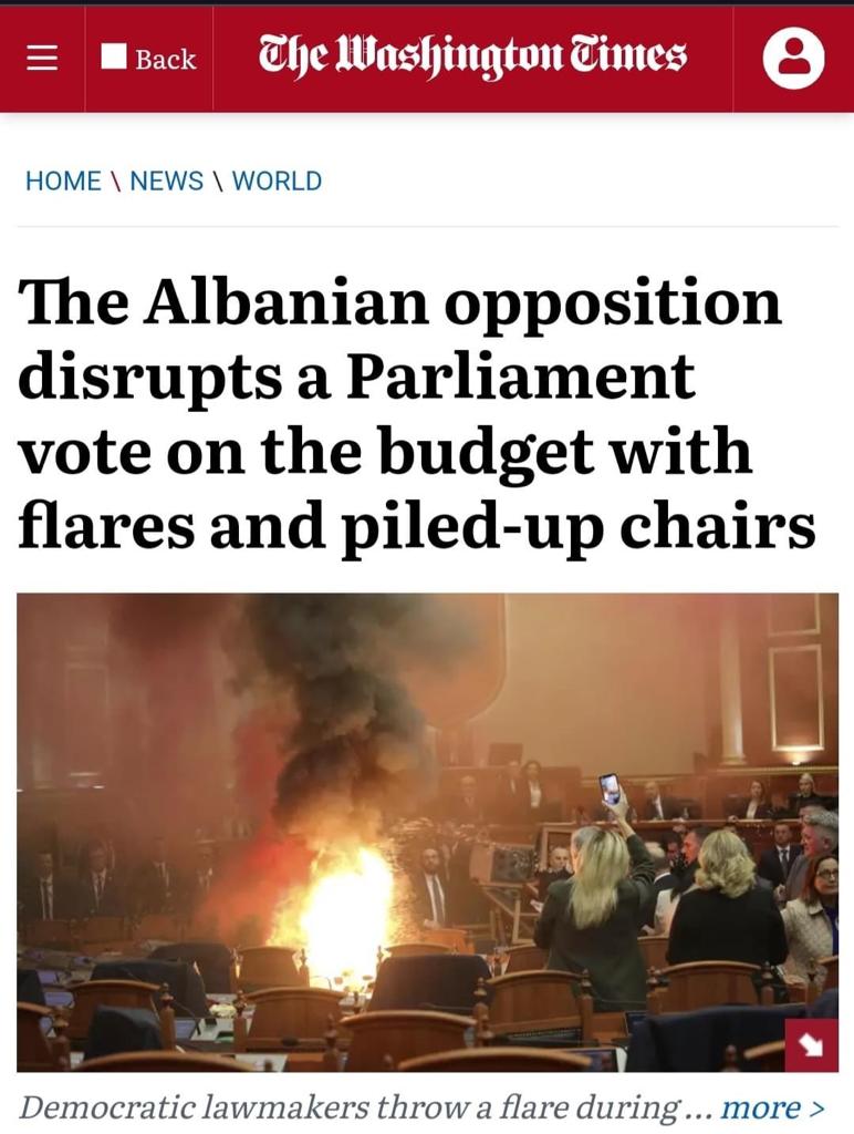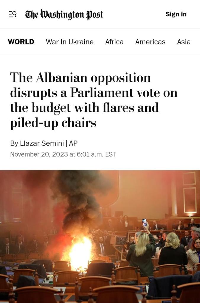 Uashington Post: Opozita shqiptare prish votimin e buxhetit në Parlament me flakadanë dhe karrige të grumbulluara