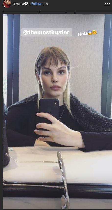 Por ditën e sotme, ajo ka publikuar një foto në ‘Instastory’ ku duket totalisht ndryshe. Almeda ka ndryshuar ngjyrën e flokëve, duke u kthyer kështu në bjonde. Ajo gjithashtu i ka shkurtuar shumë flokët si edhe ka prerë balluke.