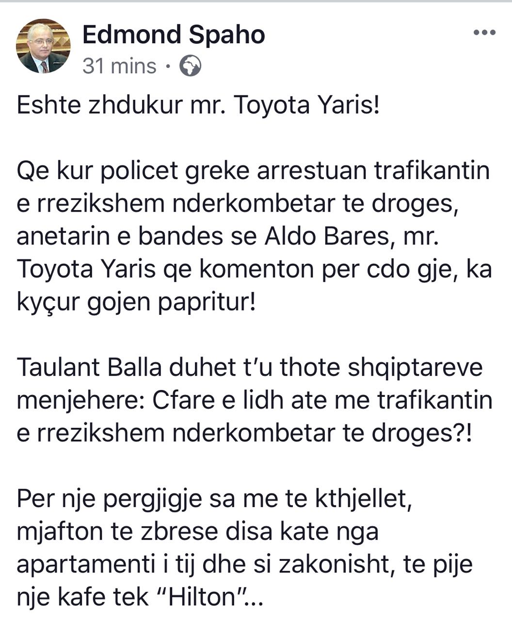 Që kur policët greke arrestuan trafikantin e rrezikshëm ndërkombëtar të drogës, anëtarin e bandës së Aldo Bares, mr. Toyota Yaris që komenton për çdo gjë, ka kyçur gojën papritur!