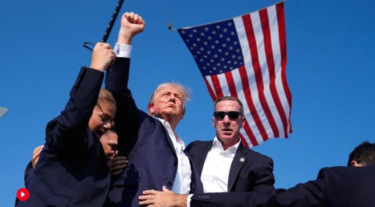 Ish-presidenti Donald Trump ishte objektivi i një atentati të dukshëm të shtunën në një tubim në Pensilvani, disa ditë përpara se ai të pranonte nominimin republikan për herë të tretë. Një breshëri të shtënash shkaktoi panik dhe Trump u pa i gjakosur, ndërsa një plumb e qëlloi në veshin e djathtë. Ish-Presidenti u rrethua nga Shërbimi Sekret që e largoi nga podiumi, ndërsa ai ngriti grushtin e tij në një shfaqje sfide.