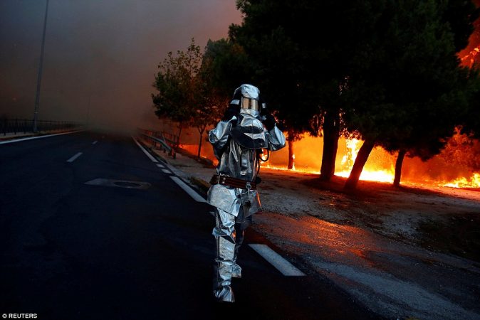 Nëpërmjet fotove të publikura nga Daily Mail tregohet se si flakët gjigande kanë përfshirë rrethinat e Athinës. Në to shfaqen njerëz të frikësuar që arratisen për të shpëtuar jetën, zjarrëfikës që luftojnë me zjarrin ku cdo sekondë është flori për të shpëtuar jetët e njerëzve.
