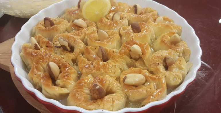 12 petë për bakllava, 500 gr arra arabe, 100 gr gjalpë