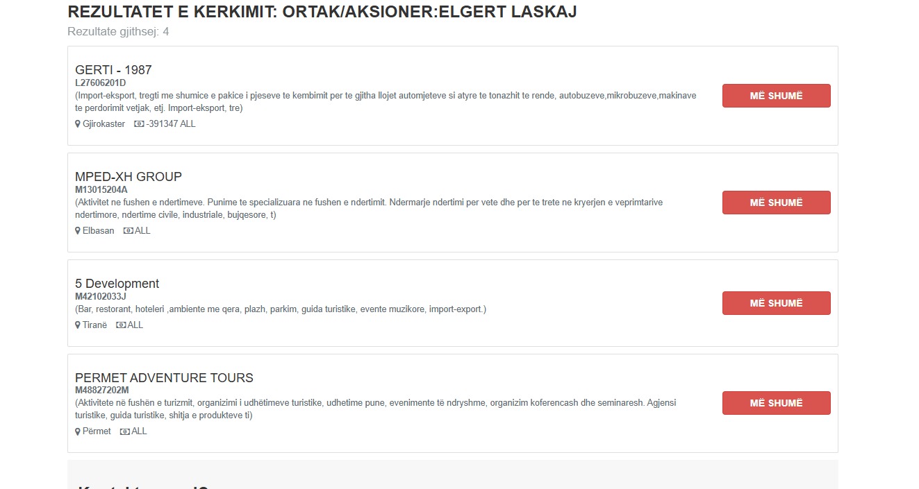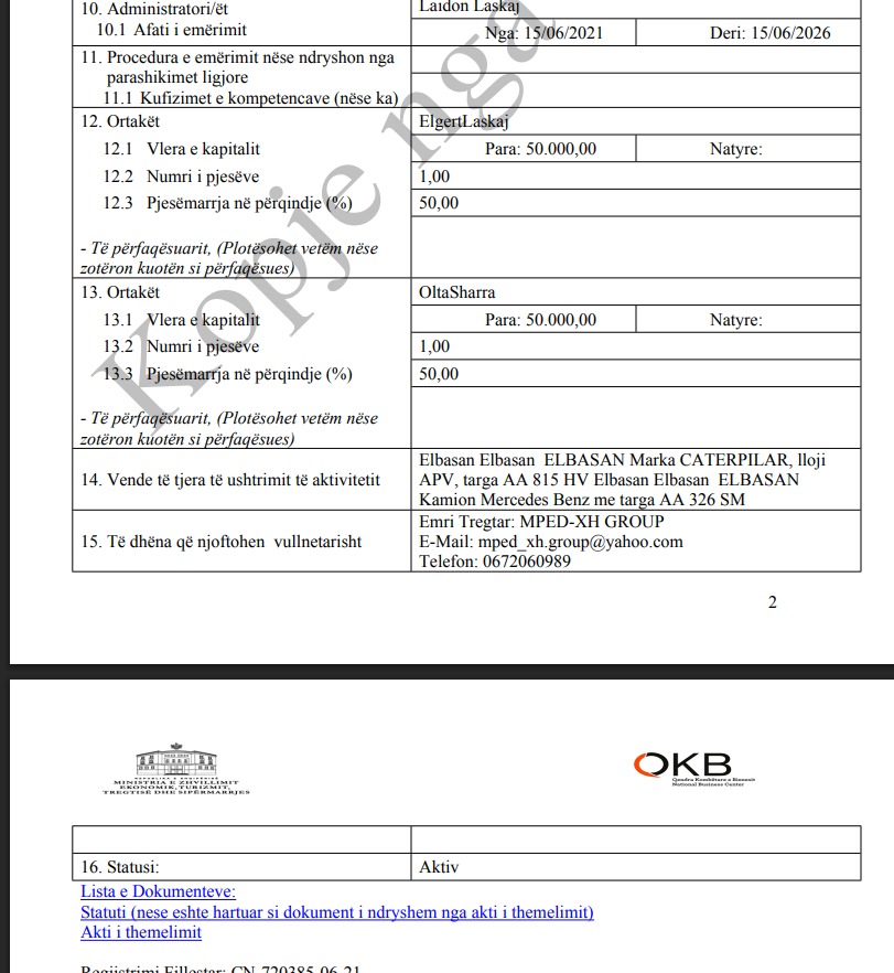 Por përpos këtyre subjekteve, Elgert Laskaj që përfiton tendera nga Bashkia Përmet ka edhe një tjetër kompani. “5 development” është një tjetër subjekt me administrator Besjon Beqaj dhe aksioner 5 ortakët Marildo Papa me 10% të aksioneve, Amarildo Asmënaj me 25% të aksioneve, Elgert Laskaj me 25% të aksioneve Besjon Beqaj me 35% të aksioneve dhe Juxhin Pasho me 5% të aksioneve. Ky i fundit edhe pse me numrin më të vogël të aksioneve rezulton gjithashtu të paktën për vitin 2022 administrator i Njësisë Piskovë. A është Pasho në kushtet e shpërdorimit të detyrës apo përfitimit për shkak të detyrës?