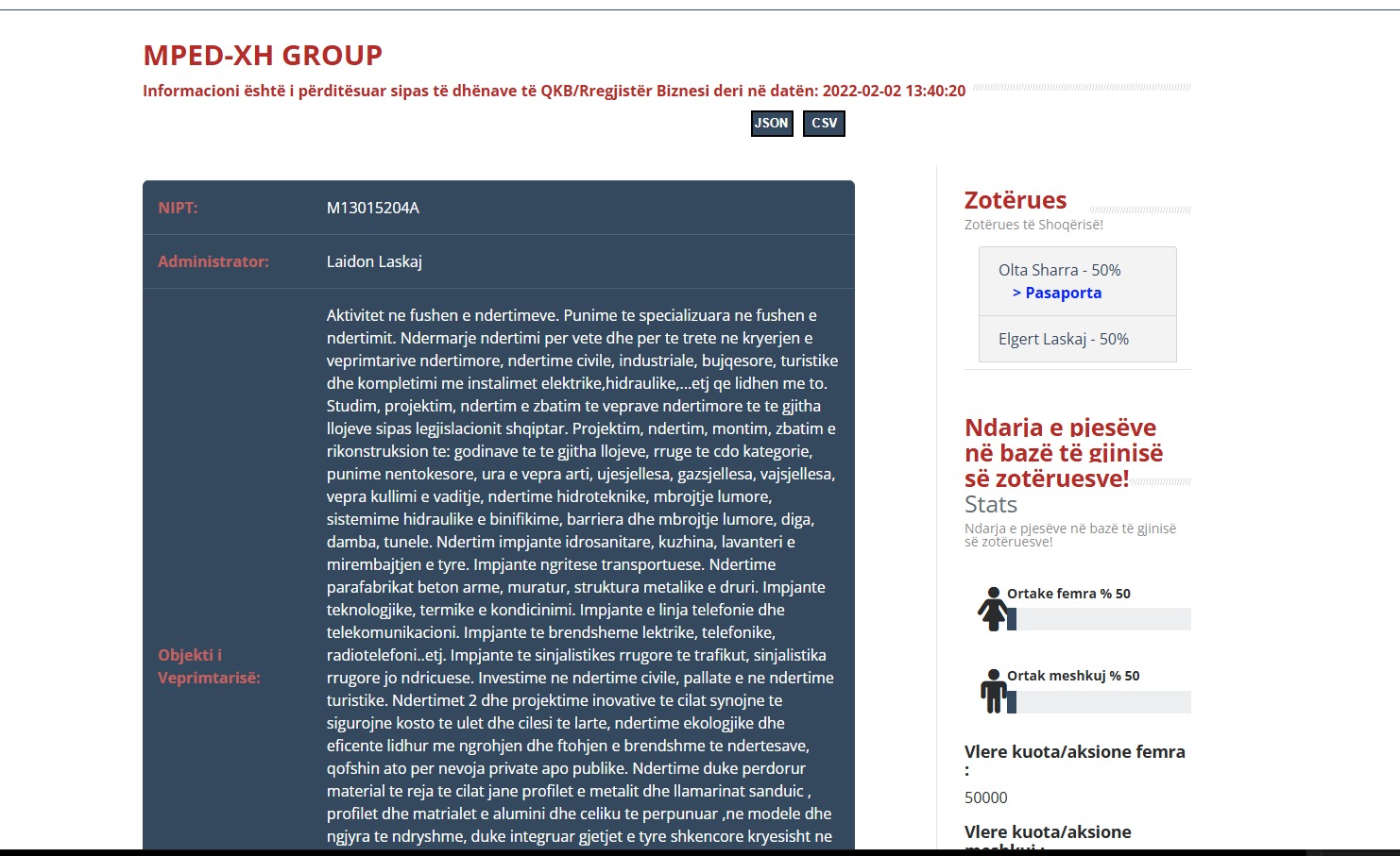 Elgert Laskaj përveç kompanisë “Gerti 1987” ka hapur kompaninë “MPED-XH Group” në datë 15.06.2021. Laskaj është bashkëpronar me Olta Sharrën, gruan e Gentian Sharrës, në kompaninë e ndërtimit. Banda e Talo Çelës, ndonëse e goditur nga SPAK për një sagë krimesh të rënda, vijon në forma të kamufluara të përfitojë para publike, përmes tenderave.