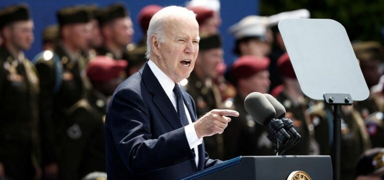 Duke bërë homazhe ndaj SHBA-së dhe ushtarëve të tjerë aleatë që luftuan në plazhet e Normandisë në qershor 1944, Biden theksoi se “aleancat e forta” ishin thelbësore.