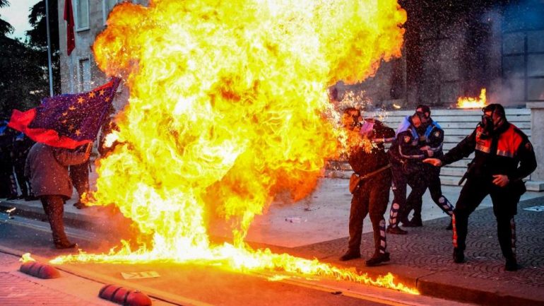 Flakë, bomba tymuese, trazira në rrugë, demonstrata masive çdo javë: Shteti ballkanik, Shqipëria, zhytet në kaos. Gjatë ditëve të fundit, gjatë protestave kundër qeverisë në kryeqytetin, Tirana, pati përleshje në rrugë.