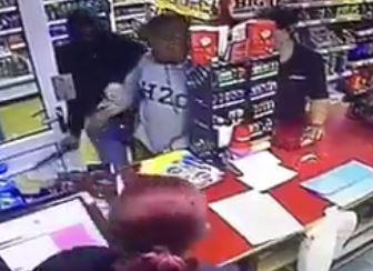 43-vjecari ndodhej pak metra larg kasës ku grabitësi po kërcënonte shitësen me një thikë. Ngjarja ka ndodhur në Cheadle, Manchester Britani e Madhe. Gjithçka është filmuar nga kamerat e sigurisë.