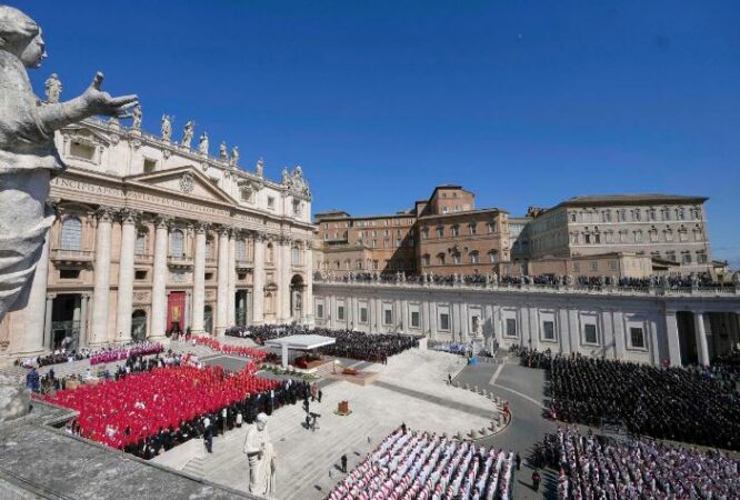 Papa Françesku zgjodhi të ndiqte një “rrugë të vetëdhënies deri në ditën e fundit të jetës së tij tokësore”, tha Kardinali Re në predikimin në funeralin e papës së ndjerë.
