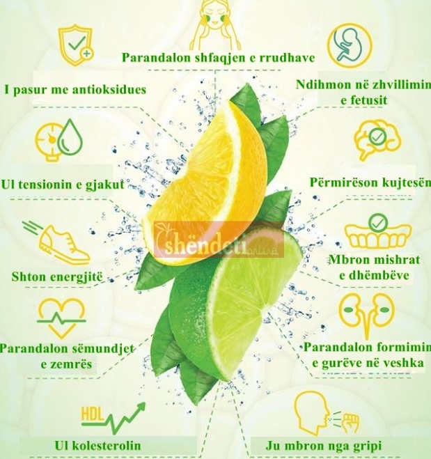 Po kështu, limoni është i pasur me antioksidues. Ai ul tensionin e jaku, shton energjitë, dhe parandalon sëmundjet e zemrës.