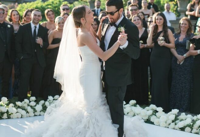 Reperi 51-vjeçar ndau një moment emocionues me vajzën e tij 28-vjeçare, duke e rrotulluar rreth pistës së kërcimit ndërsa të ftuarit, të veshur me veshje klasike të zeza, e shikonin.