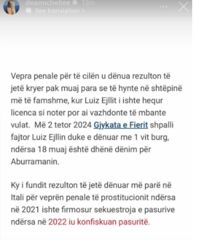 Gjykata e Fierit dënoi këngëtarin shkodran, njëkohësisht fituesin e Big Brother Vip Luiz Ejlli, për falsifikim dokumentesh, duke përdorur vulën e noterit. Ky rast ka ndodhur në vitin 2021.