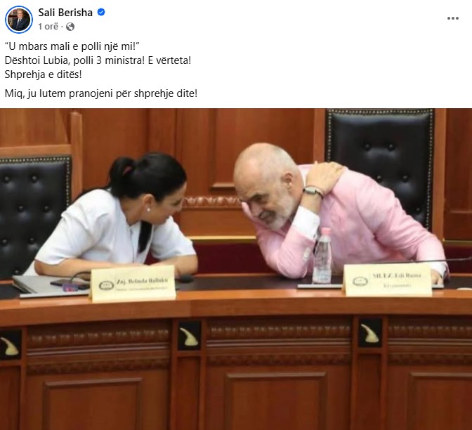 Kryetari i PD, Sali Berisha reagoi me një postim për ndryshimet në qeveri, të firmosura një ditë më parë nga kryeministri Edi Rama, pas mbledhjes maratonë të grupit parlamentar socialist.