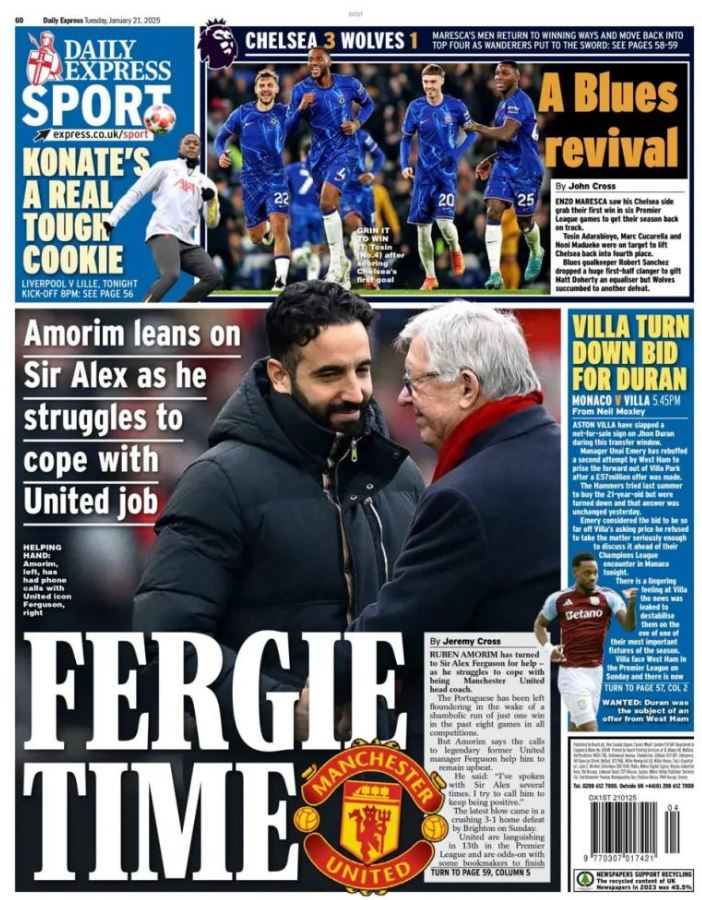 “Ky është Man.United më i keq në histori”. Kjo deklaratë e Ruben Amorim “pushtoi” faqet e para të mediave angleze, fundja me të drejtë pasi shifrat e konfirmojnë këtë. Tekniku portugez erdhi si një bekim në “Pallatin e Ëndrrave”, por Amorim e ka shumë të vështirë të bëjë diçka ndryshe, me të në stol United po bën edhe me keq se sa në periudhën e Ten Hag, aktualisht ndodhen në vendin e 12-të. Tani Amorim kërkon shpëtim duke kërkuar këshilla nga ikona e këtij klubi, Alex Ferguson: “Koha e Fergit”, shkruajnë të përditshmet angleze në faqet e para.