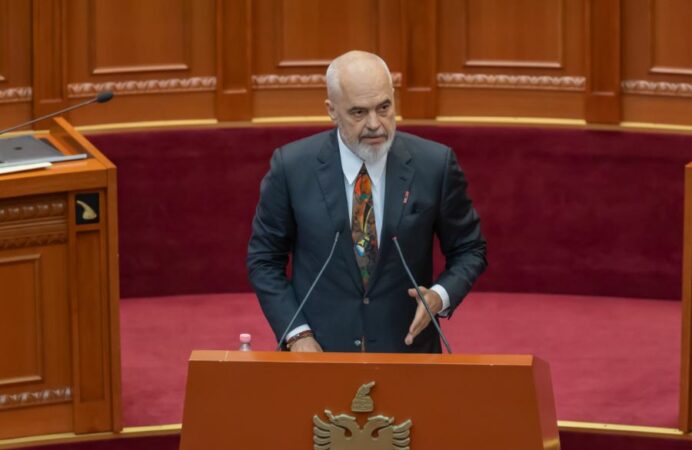 Kryeministri Edi Rama vijon fjalën e tij në foltore ku po diskuton në lidhje me projekt rezolutën kundër korrupsionit, i ka kërkuar opozitës votimin e saj.