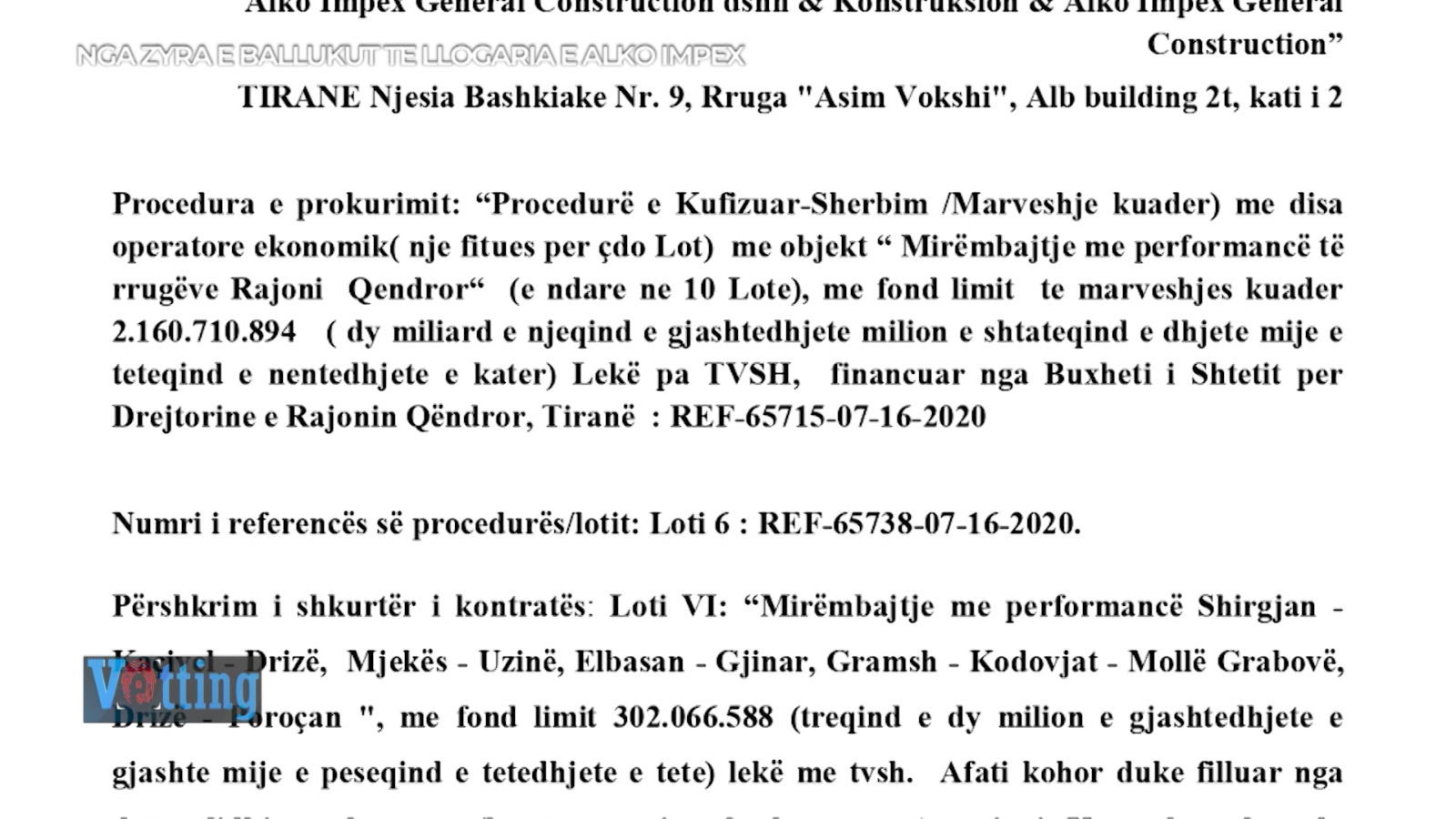Nga dokumentet zyrtare rezulton se ky tender është firmosur vetë personalisht në kundërshtim me ligjin asokohe nga zv.kryeministrja Balluku, me numër protokolli 2317/4, në 27 dhjetor 2017. Në kontratë parashikohet se “ALKO-IMPEX General Construction” e administruar nga Arbër Abazi dhe në pronësi të Imer Ademit do të merrte pagesën paraprake për 70% të vlerës totale të kontratës. Në informacionet e siguruara nga “Vetting” rezulton se në ditën që është firmosur kontrara, AlbControl-i ka bërë një urdhër transferte me faturë tatimore nr. 117 me seri 51770495 duke realizuar paradhënie në shumën 31,3 milionë lekë për kompaninë “ALKO-IMPEX General Construction”, gjë e cila është në shkelje të ligjit të Prokurimeve Publike sipas Dokumenteve Standarte të këtij tenderi.