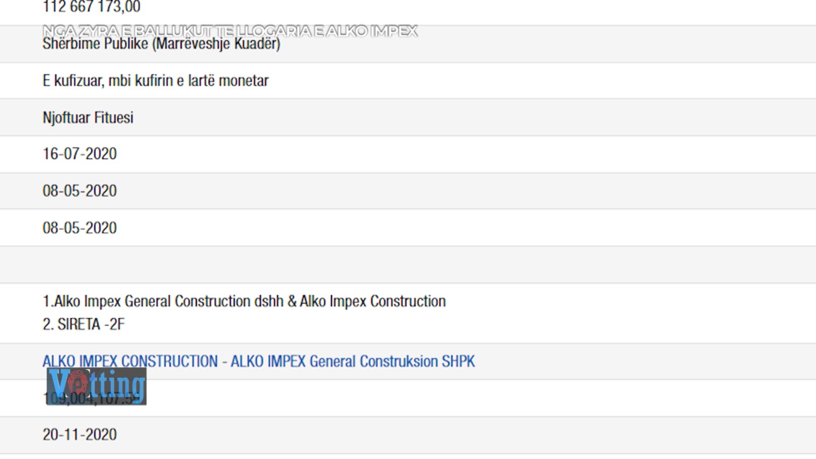 Duhet theksuar se gjenialiteti i biznesmenit të ri do të qëndronte në ndryshimin e emrit të kompanisë, duke e quajtur “ALKO IMPEX CONSTRUCTION”. Pra, kompania e re me emër do të ishte një klon i kompanisë “ALKO-IMPEX General Construction”, duke krijuar një rrëmujë informative, si në institucionet publike, por edhe në hapësirën mediatike.