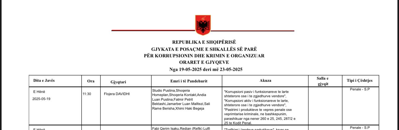 Në këtë seancë, gjyqtarja Floreja Davidhi do të shqyrtojë kalimin e dosjes për gjykim për të pandehurit Sali Berisha, Jamarbër Malltezi, Fatmir Bektashi, Xhimi Begejan dhe Andia Pustinën. Mbrojtësit e Berishës kanë tentuar të shtyjnë procesin, teksa kanë hedhur edhe akuza ndaj gjyqtares së hetimit paraprak, Irena Gjoka, lidhur me një dënim të supozuar në Greqi për falsifikim dokumentesh.