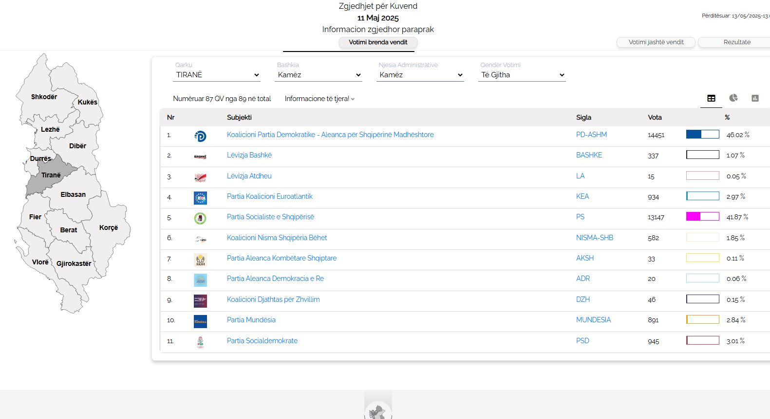 Janë numëruar 87 nga 89 kuti në total në Bashkinë e Kamzës, në qarkun e Tiranës.