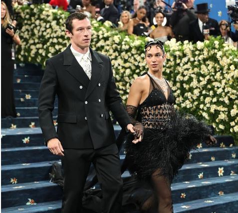 Në një moment të veçantë për jetën e saj personale, Dua u shfaq për herë të parë në tapetin e kuq me të fejuarin, aktorin britanik Callum Turner, i cili ishte veshur me një kostum të personalizuar nga Louis Vuitton.