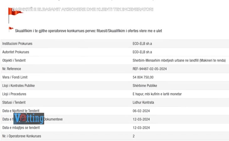 Shoqëria ECO-ELB sh.a. e cila kryen menaxhimin e inceneratorit dhe landfillit duke qenë një shoqëri e re nuk i zotëron këto mjete të nevojshme për operimin e inceneratorit dhe landfillit prandaj është e nevojshme që ky shërbim të mbulohet me anë të një kontrate shërbimi nga të tretë”, thuhet në dokument.