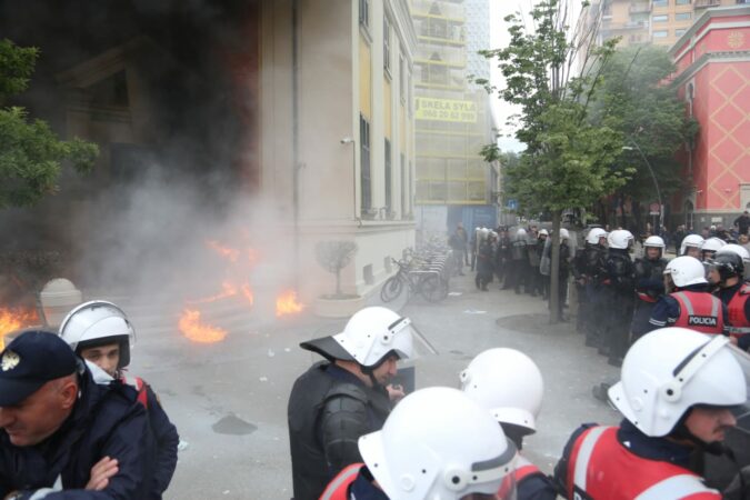 Protesta e djeshme kishte tensione, me dhjetar molotovë të cilat u hodhën në hyrje të godinës, ndërkohë që demokratët Noka, Klevis Balliu, dhe qytetarët ata që tërhiqnin gardhin metalik dhe tentuan të thyenin kordonin policor.