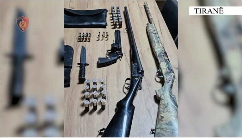 Gjatë kontrollit në banesën e 37-vjeçarit, blutë gjetën dhe sekuestruan armën e zjarrit pistoletë që dyshohet se e ka përdorur për kanosjen, 2 armë gjahu, 1 armë të ftohtë dhe municion luftarak.