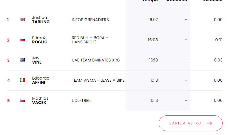 Nuk mund të lihet pa përmendur rekordi i Tarling. 21-vjeçari u shndërrua në çiklistin më të ri  që arrin një fitore në garën kronometrike.