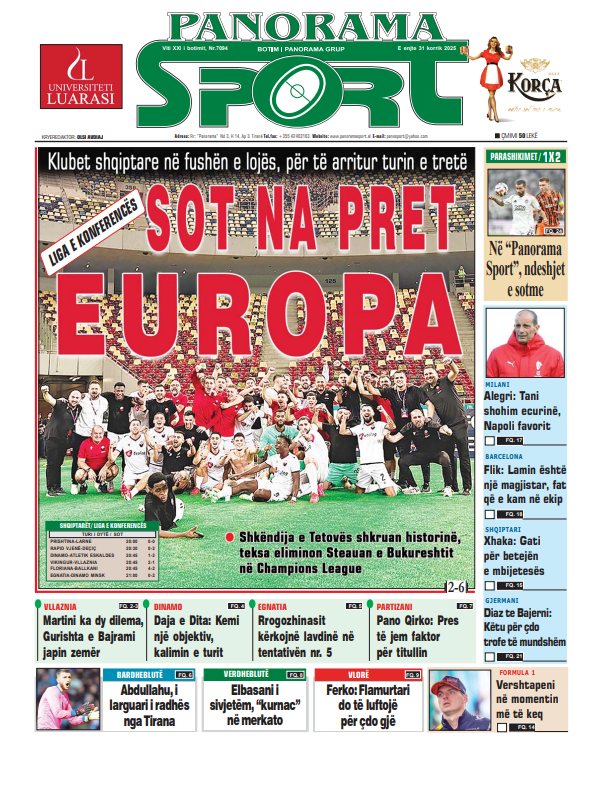 “Sot na pret Europa. Klubet shqiptare në fushën e lojës, për të arritur turin e tretë”, shkruan Panorama Sport në faqen e parë.