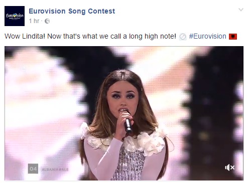 Përveç duartrokitjeve të publikut, përfaqësuesja e Shqipërisë Linda Halimi ka marrë vlerësime edhe nga faqja e Eurovisonit në Facebook, por nuk ka mbledhur mjaftueshem vota qe te kalonte ne finale.