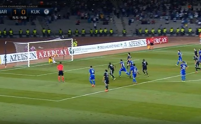 53′ Tjetër penallti për azerët. Këtë herë Emeghara gabon. Vijon rezultati 1-0