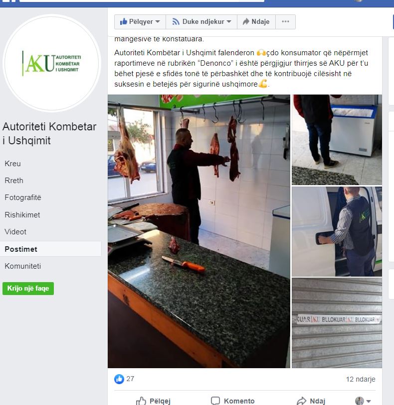 Autoriteti Kombëtar i Ushqimit falenderon ?çdo konsumator që nëpërmjet raportimeve në rubrikën “Denonco” i është përgjigjur thirrjes së AKU për t’u bëhet pjesë e sfidës tonë të përbashkët dhe të kontribuojë cilësisht në suksesin e betejës për sigurinë ushqimore?.
