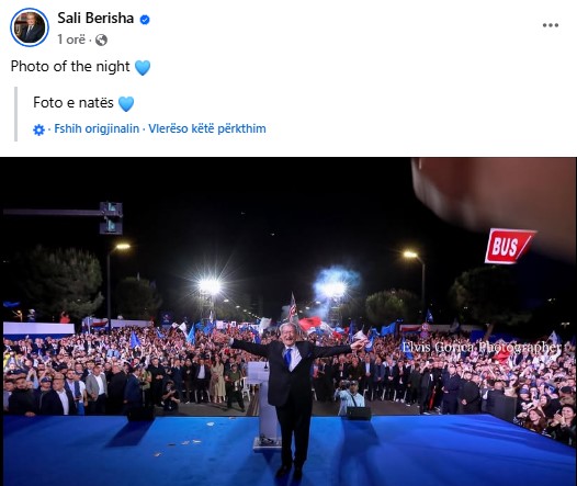 “Photo of the night”, kështu shkruan kreu i PD në rrjetin social Facebook, duke postuar një foto nga mitingu përmbyllës i fushatës së PD në “Bulevardin e Ri”.