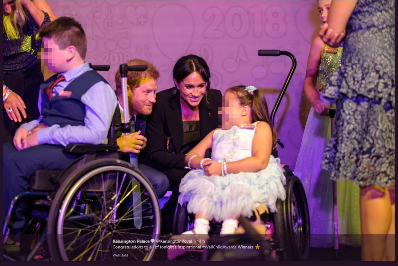 Duka dhe dukesha e Sussex kanë marrë pjesë në WellChild Awards, në nder të fëmijëve britanikë të sëmurë rëndë dhe kanë folur me Matilda Booth, një vajzë 7 vjeçare e Sowerby Bridge, e cila ka probleme me shtyllën kurrizore dhe lëviz vetëm nëpërmjet një karrigeje me rrota.