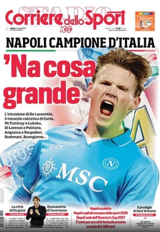 Edhe mediat në Itali kurorëzojnë Napolin: “Titull i çmendur, apo mbretëria e Napolit”, ishin disa nga titujt kryesor.