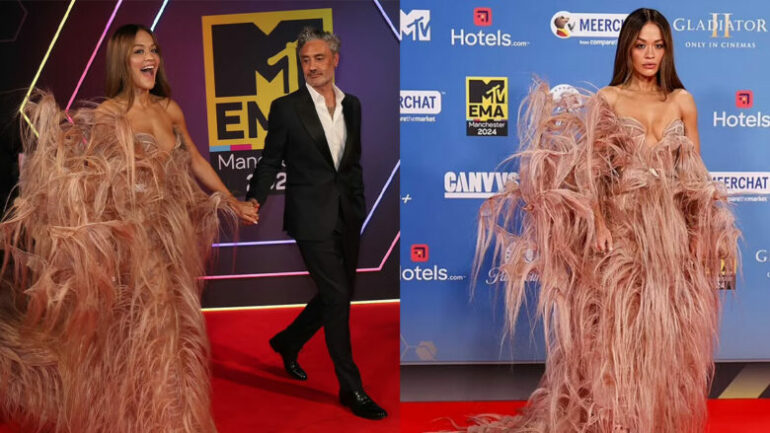 Rita e çoi modën në një tjetër nivel me një fustan ngjyrë rozë të çelur, i cili ishte stolisur me qindra pupla, duke krijuar një efekt mahnitës që tërhiqte të gjithë sytë.