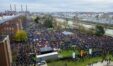 Rreth 16,000 punëtorë u mbërthyen në sallën e mbushur plot, raporton Reuters, me 5,000 të tjerë jashtë duke parë në një ekran.