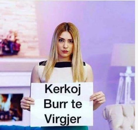 Sigurisht që gjithçka e ka bërë për të përcjellë një mesazh. Përmes kësaj pankarte ajo ironizon të gjithë ata meshkuj të cilët kërkojnë vajza të virgjëra.