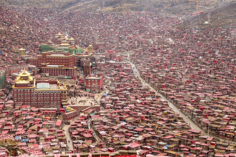 Ky venbanim piktoresk, që njihet me emrin Instituti Budist Larung Gar, kishte filluar të zhvillohet në vitet 80-ta të shekullit të kaluar, në lartësinë mbi detin prej rreth 3.800 metrash. Mes kodrave jeshile të luginës Larung Gar, në provincën Sichuan të Kinës, gjendet kolonia më e madhe e budistëve në botë, respektivisht, vendbanimi më i dendur i këtij lloji në botë, ku jetojnë 40,000 murgj. Besimtarët ballafaqohen me kushte ekstreme të motit por, me kalimin e kohës ata adaptohen në një ambient të tillë. Në këtë kampus budistësh, shtëpitë e kuqe, në formë kasollash, janë ndërtuar fare pranë njëra tjetrës, ndërsa murgeshat dhe murgjit janë të ndarë sipas moshës dhe gjinisë. Në këtë vend nuk ka aparate televizive dhe e gjithë jeta i kushtohet lutjeve, besimit dhe mësimit të budizmit.
