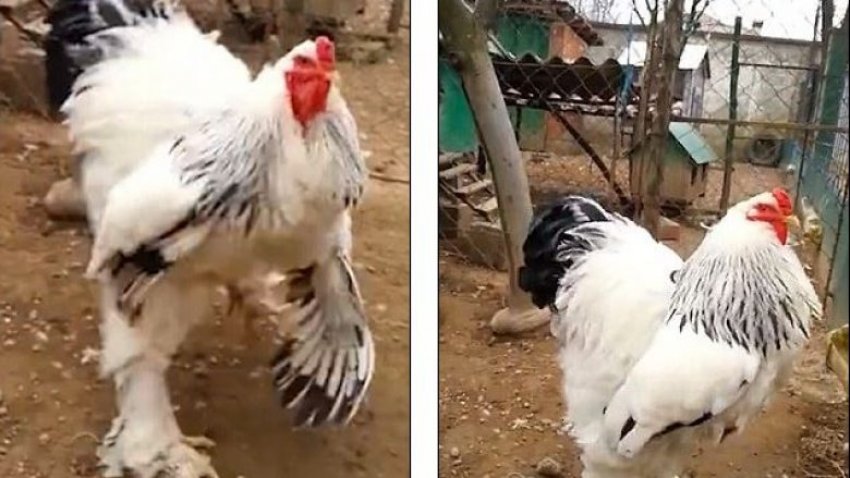 Videoja e postuar më 17 mars është filmuar në Kosovë, ndërsa duket gjeli gjigant duke shëtitur nëpër oborrin e një shtëpie. Gjeli është në pronësi të Fitim Sejfijajt nga Kosova dhe duket si një dinosaur, shkruan Daily Mail.