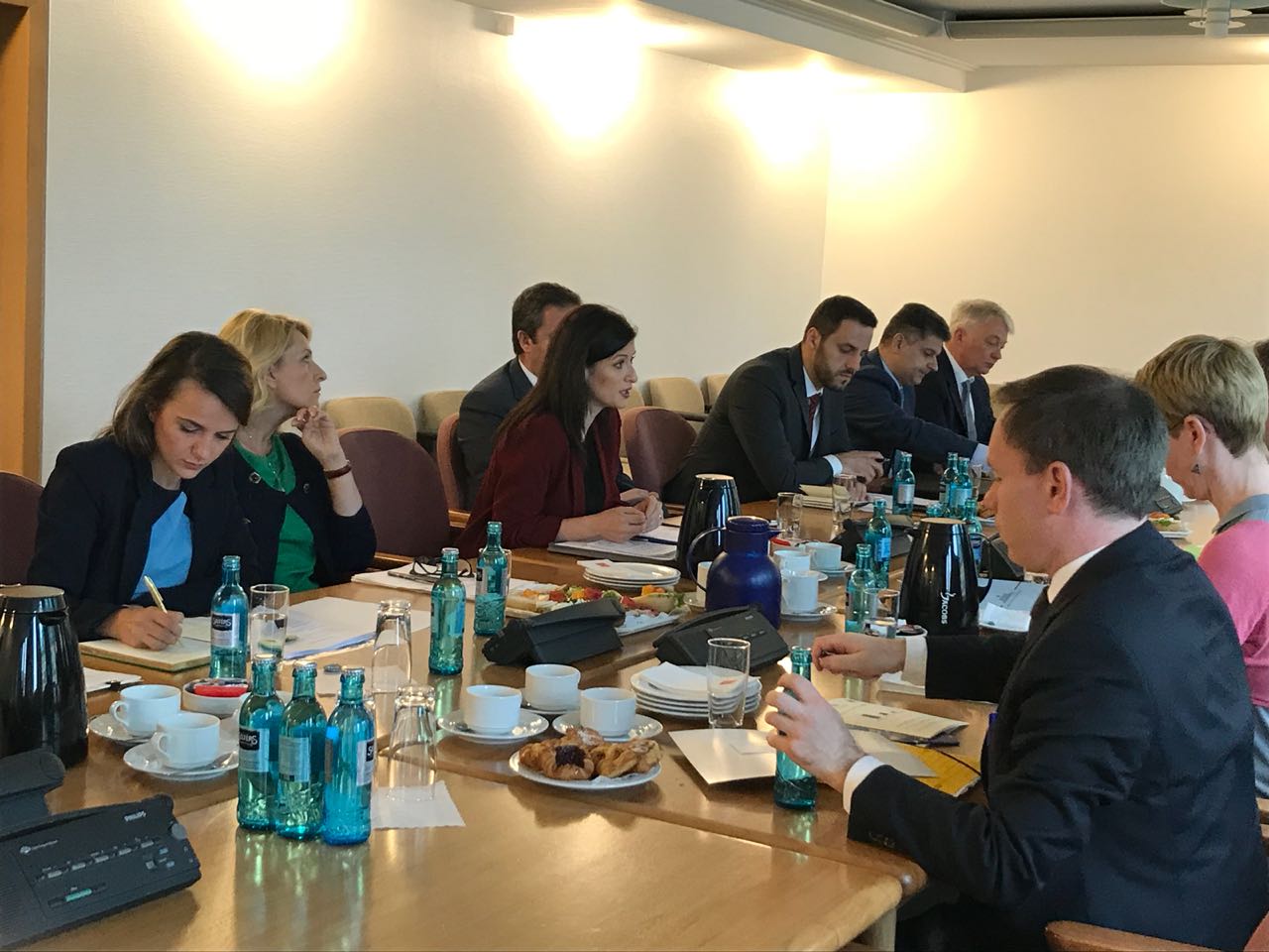 GJERMANI-Ministrja e Drejtësisë, Etilda Gjonaj zhvilloi sot një seancë dëgjimore me një grup deputetësh të Parlamentit Gjerman të kryesuar nga Florian Hahn, pjesë e Komisionit për Çështje Evropiane. Në seancën dëgjimore morën pjesë edhe Mimi Kodheli, Kryetare e Komisionit për Politikën e Jashtme, zRudina Hajdari, Deputete e Kuvendit të Shqipërisë, zëvëndësministri i Brendshëm, Besfort Llamallari si dhe Adnan Xholi, Drejtor i Drejtorisë Gjyqësore në Prokurorinë e Përgjithshme si edhe Drejtuesi i Projektit Tëinning kundër Korrupsionit Detlef Kreutzer.