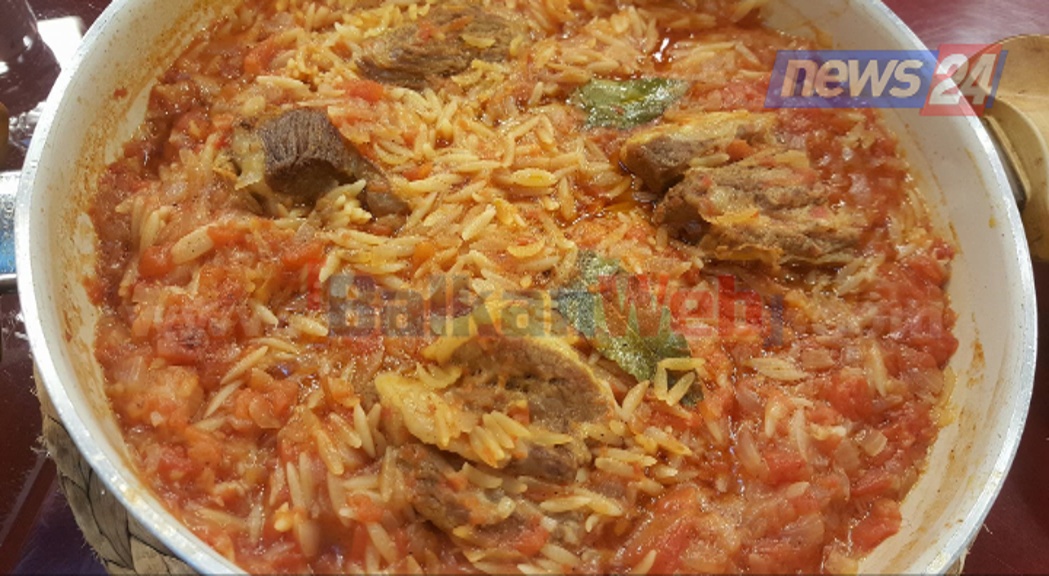 Mishin pasi e kemi prerë në copa e kaurdisim së bashku me qepën, më pas shtojmë domatet e grira imët, kripën, piperin e zi dhe gjethen e dafinës. Pasi lemë domaten të marrë një valë për 7-10 minuta shtojmë një litër ujë dhe e lemë gatimin të ziejë derisa mishi të zbutet.